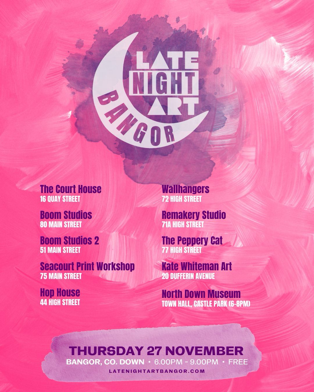 Late Night Art Bangor is a fantastic initiative celebrating the city’s vibrant arts and cultural scene, showcasing the brilliant creatives who live and work here. On the last Thursday of every month (except December), venues across the city centre open their doors for an evening of art, culture, and community.